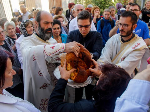Овогодишњи кумови Светлана Павков и син Владимир су, уз славски колач, жито, вино и свећу које су принели, за све присутне припремили и трпезу љубави.