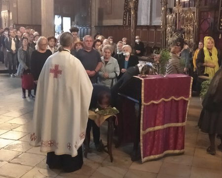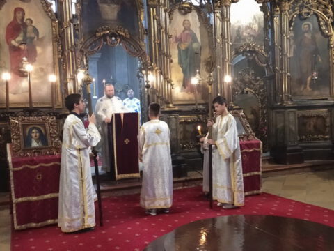 По устаљеној пракси, на празник Воздвижења Часног Крста, 27. септембра 2020. године, у храму Света Три Јерарха у Новом Саду служено је вечерње богослужење са крсним литијским ходом. После вечерњег, прочитан је молебни акатист Часном Крсту.