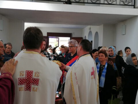 Овогодишња црквена кума, госпођа Милена Бабић-Трајић са породицом, залог кумства за идућу годину предала је госпођи Десанки Лекић.