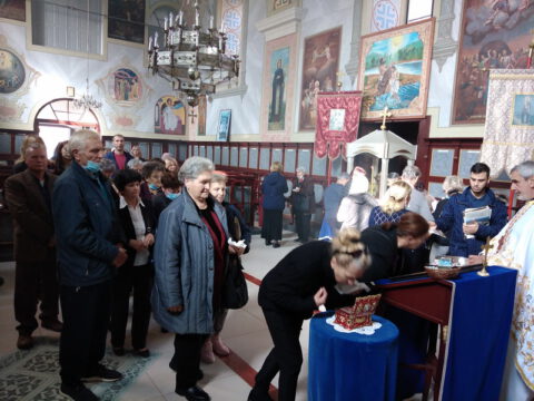 Змајево – На празник Преподобне мајке Параскеве – Свете Петке, 14/27. октобра 2020. године, свету Литургију у Светониколајевском храму у Змајеву служио је протојереј-ставрофор Радован Лазић, надлежни парох. Светој Литургији су присуствовале чланице Хришћанске заједнице из Змајева. На крају свете Литургије освећени су славски дарови, које су поводом своје славе – Свете Петке, принеле чланице Хришћанске заједнице.