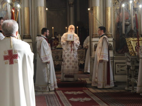 Нови Сад – Његово Преосвештенство Епископ бачки г. Иринеј служио је свету архијерејску Литургију у уторак, 14/27. октобра 2020. године, на празник Преподобне мајке Параскеве, у Светогеоргијевском храму у Новом Саду. Владици су саслуживали свештеници Саборног храма и новосадски ђакони.