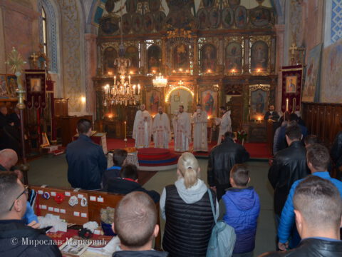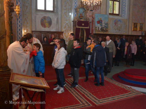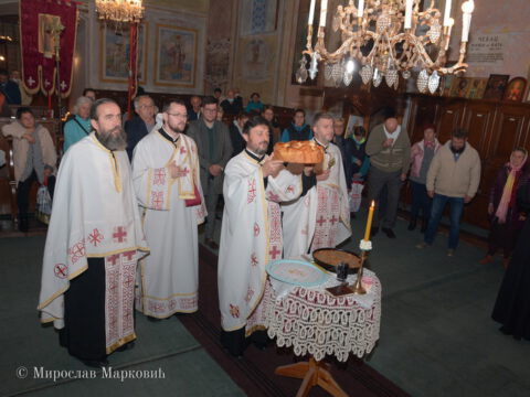 Вечерњим богослужењем, у чијем продужетку су освећени славски дарови, началствовао је протонамесник Милан Узуров, парох при храму Покрова Пресвете Богородице у Бачкој Паланци.
