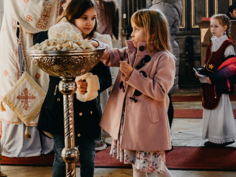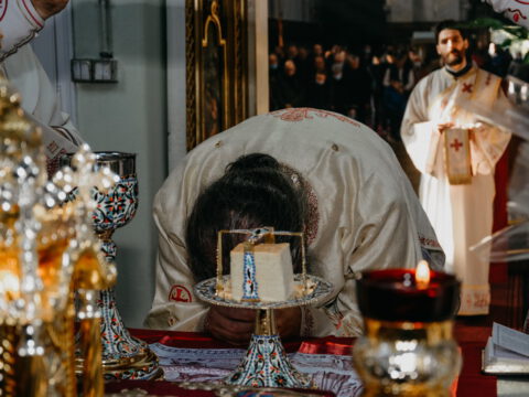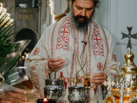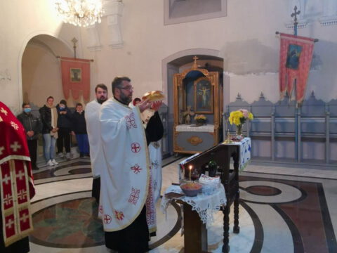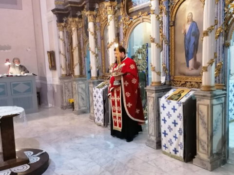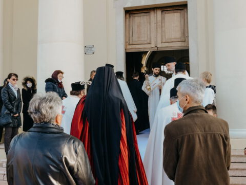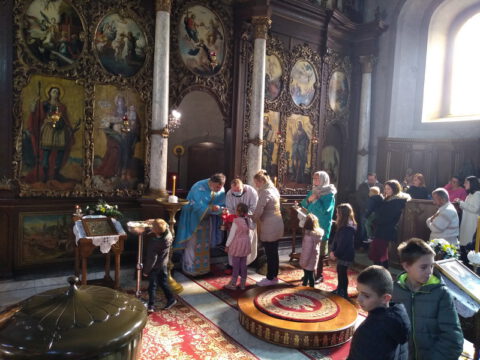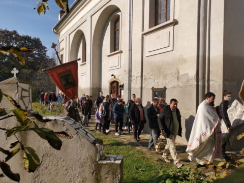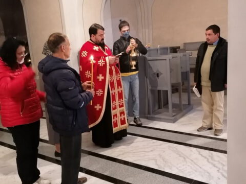 После свете Литургије око храма је извршен троструки опход.