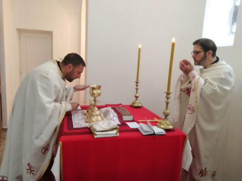 Чуруг – Његово Преосвештенство Епископ мохачки г. Исихије служио је свету архијерејску Литургију на дан Светог великомученика Димитрија Солунског, у недељу, 8. новембра 2020. године, у Световазнесењском храму у Чуругу, уз саслужење свештенства и ђакона Епархије бачке.