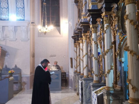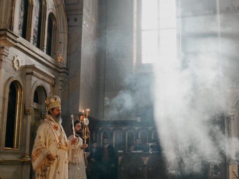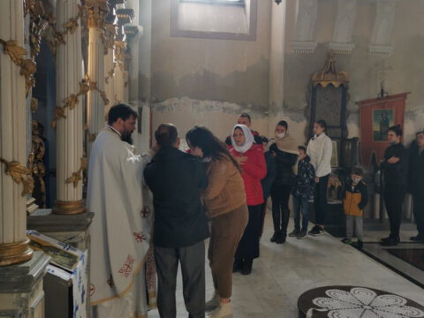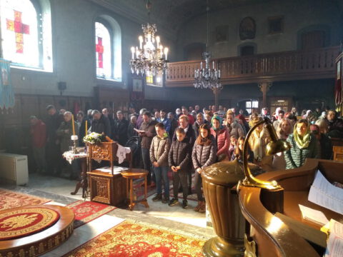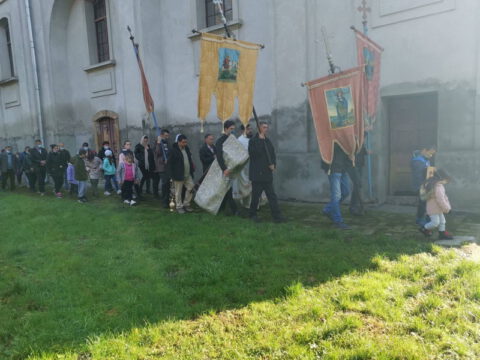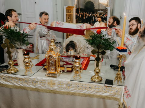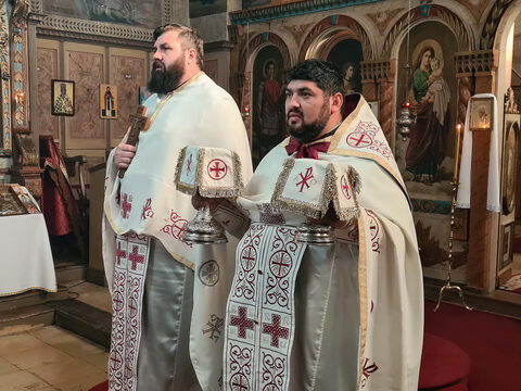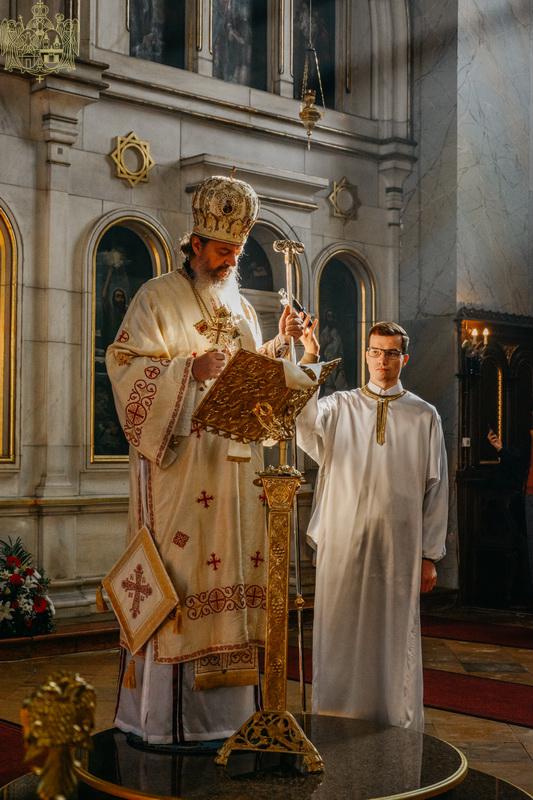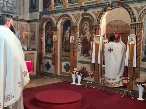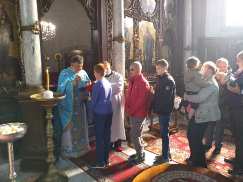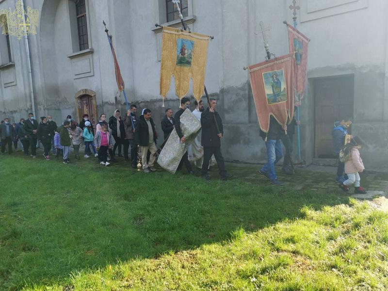 После свете Литургије око храма је извршен троструки опход.