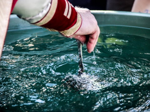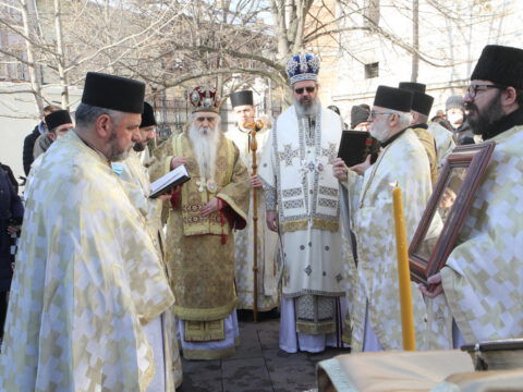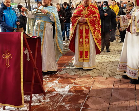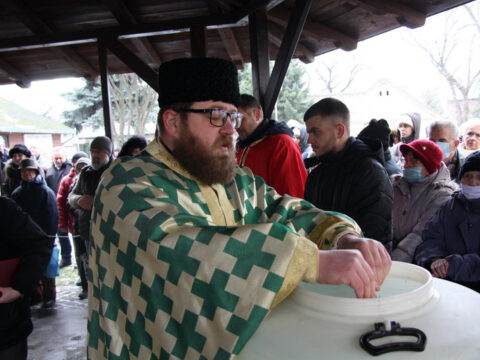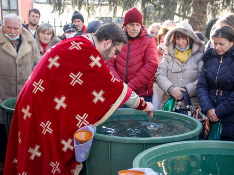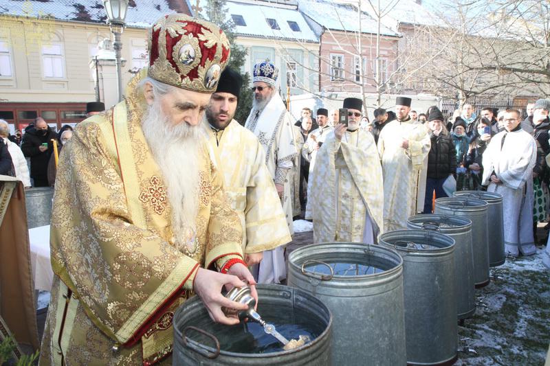 По заамвоној молитви, у порти Светогеоргијевског храма служен је чин Великог водоосвећења.