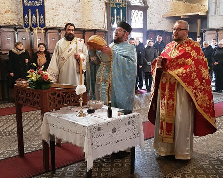 На празник Богојављења литургијским сабрањем началствовао је отац Јован, а саслуживали су отац Жарко и ђакон Дејан. После Литургије обављен је трократни литијски опход око храма и благосиљани су славски дарови – кољиво и колач, а потом је служен молитвени чин Великог водоосвећења.