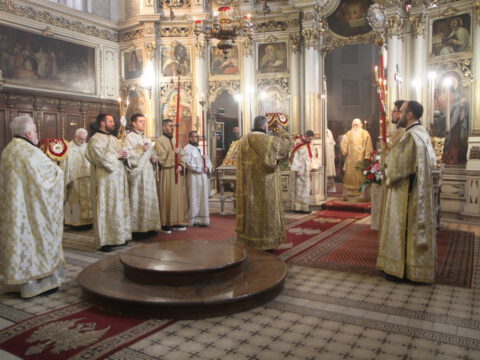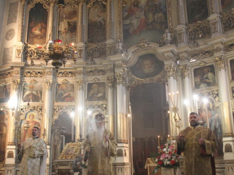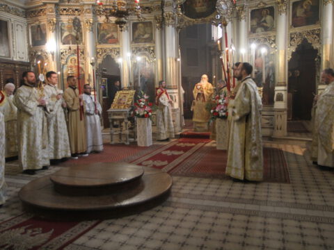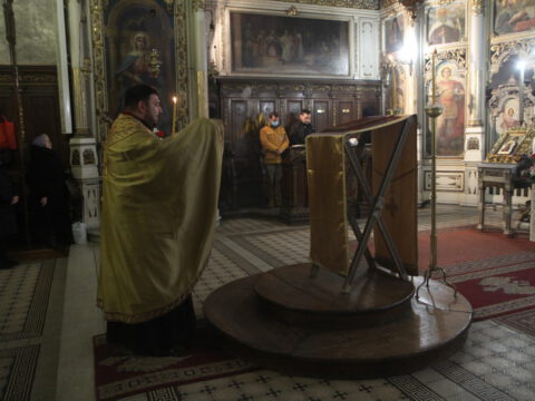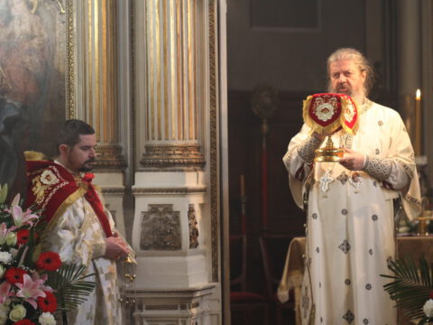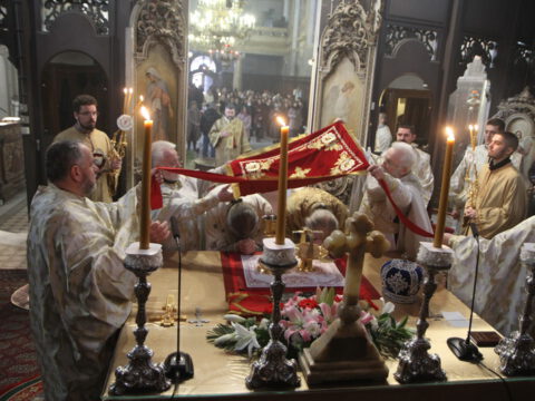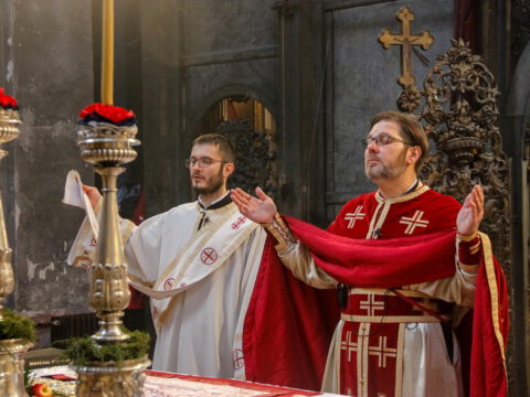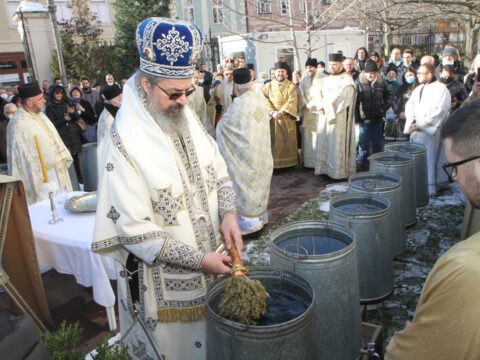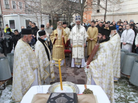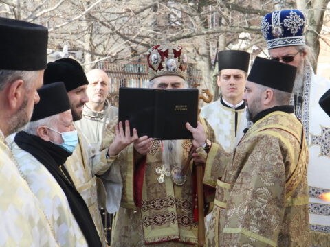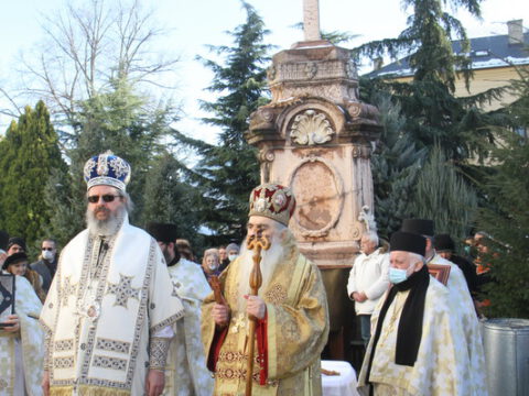 Нови Сад – На дан када наша света Црква молитвено прославља Богојављење, у уторак, 6/19. јануара 2021. године, у Саборном храму у Новом Саду свечано је прослављен овај велики Господњи празник. Велико повечерје и јутрење у Саборном храму служили су протојереј-ставрофор Ђорђе Ђурђев и протонамесник Горан Димић. На светој архијерејској Литургији началствовао је Његово Преосвештенство Епископ бачки др Иринеј, уз саслужење Епископа мохачког г. Исихија, свештенства Саборног храма и новосадских ђакона.