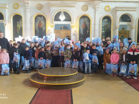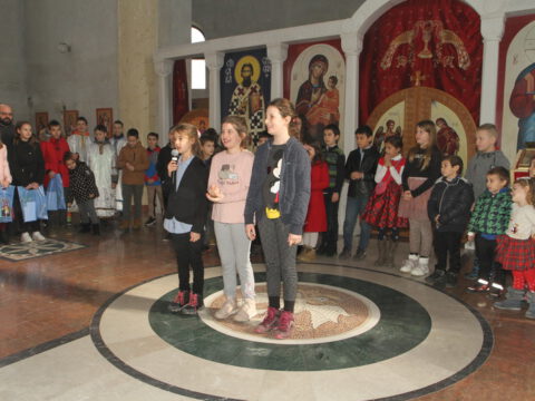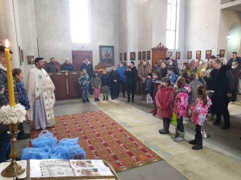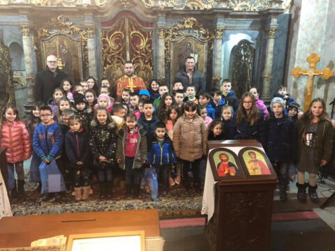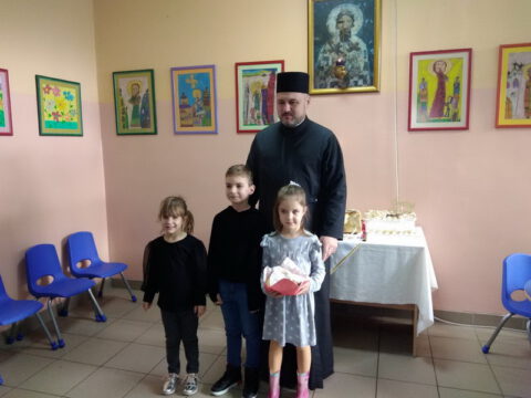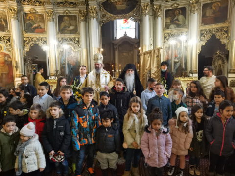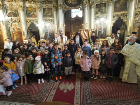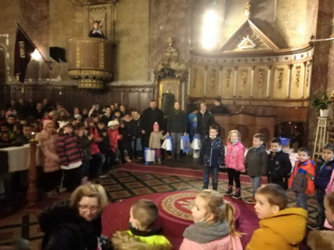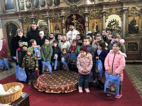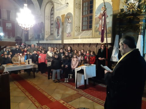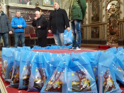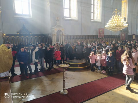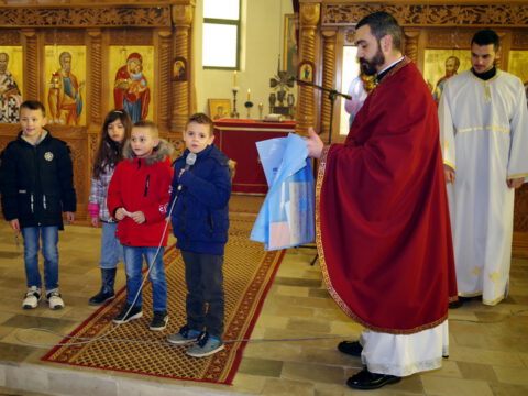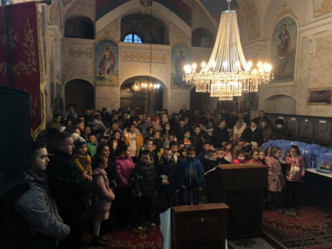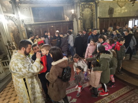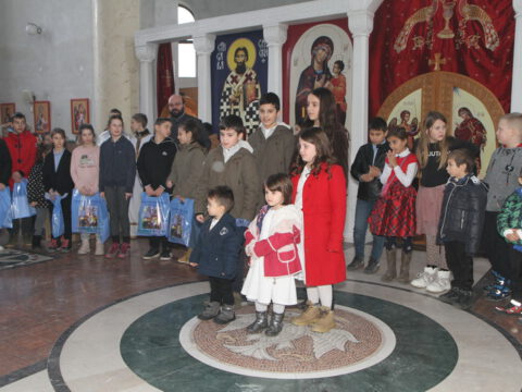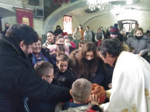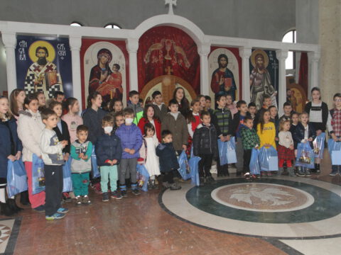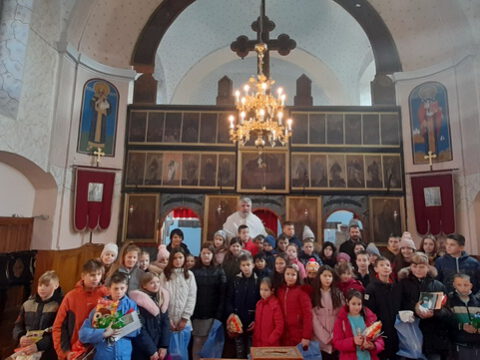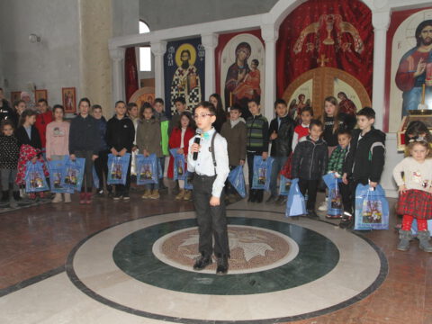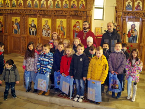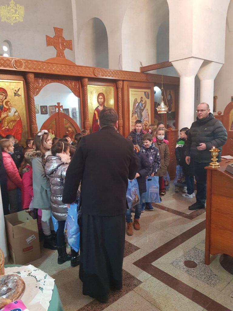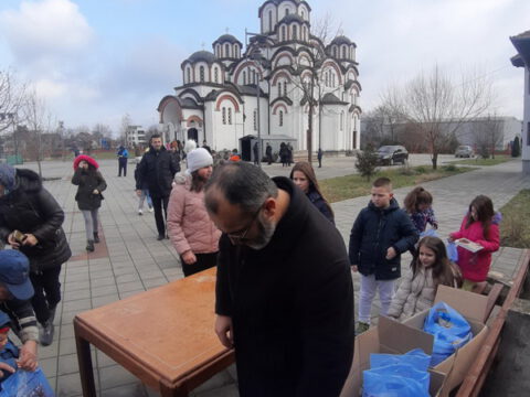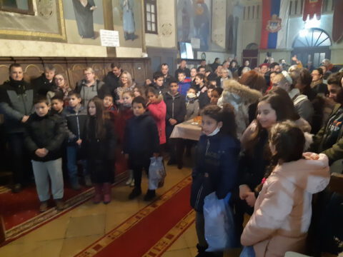 Црквена општина је обезбедила Светосавске пакетиће, који су деци, ђацима рецитаторима подељени после свете Литургије у Светосавском дому.