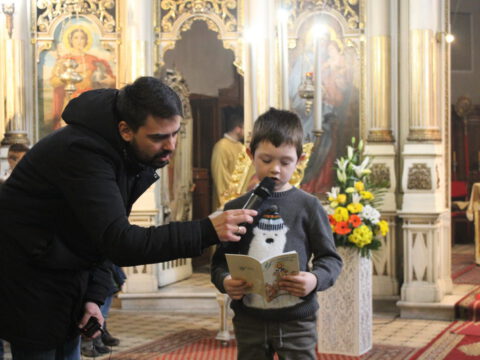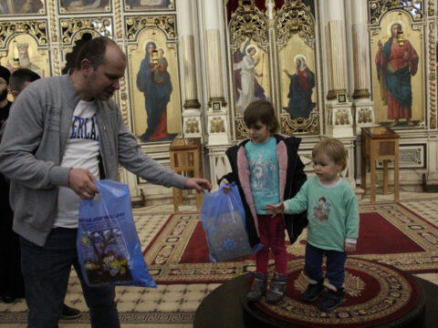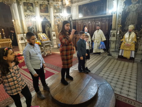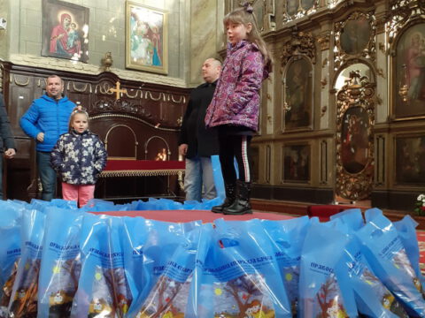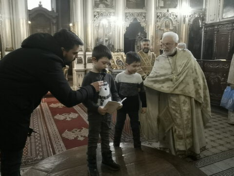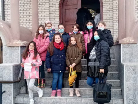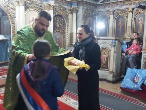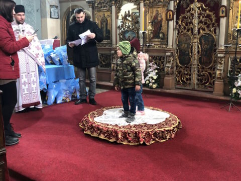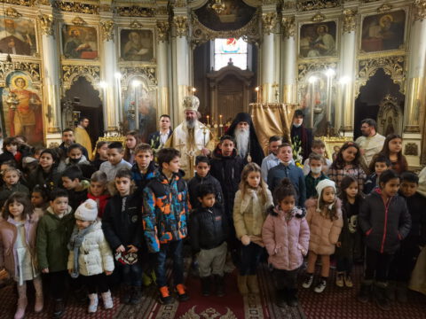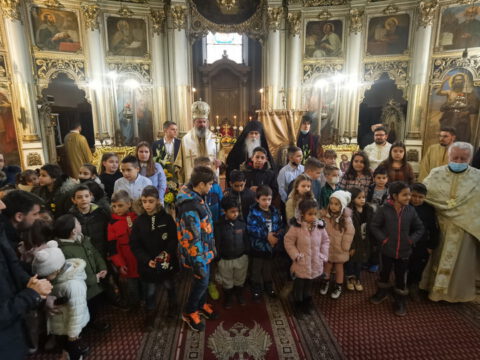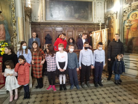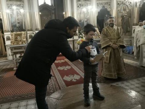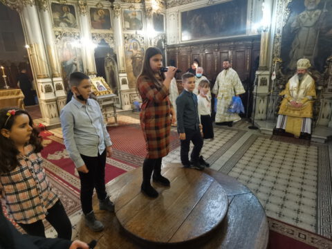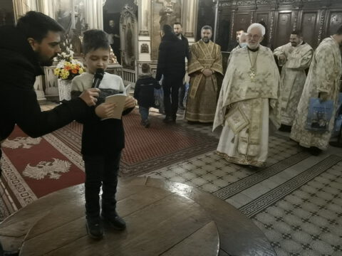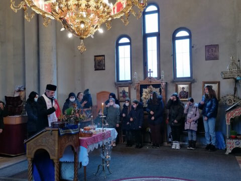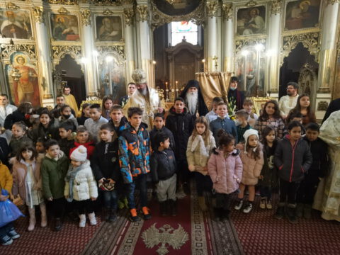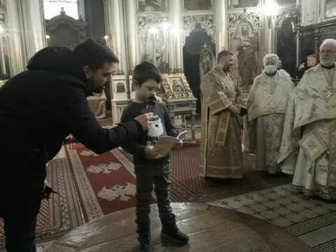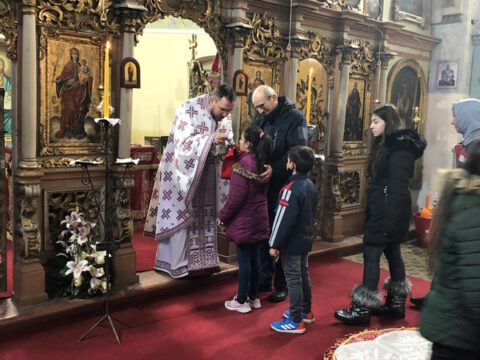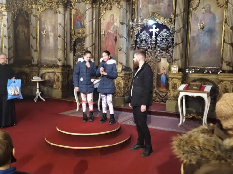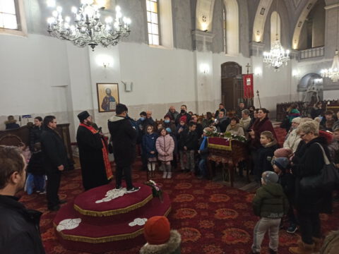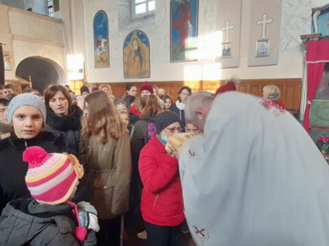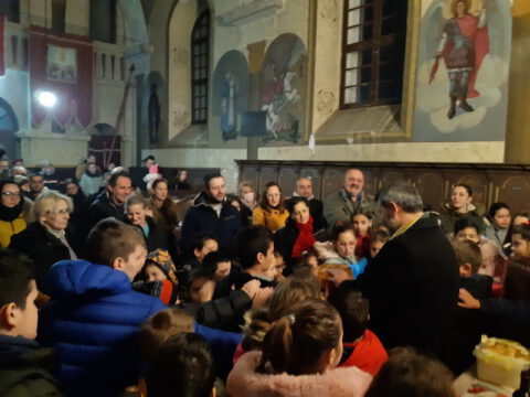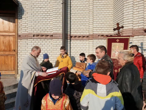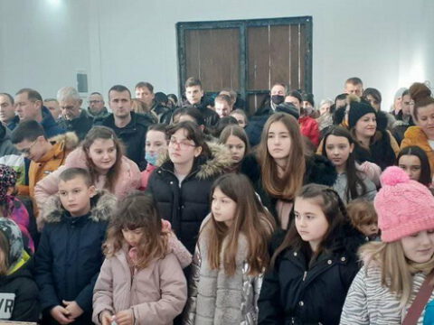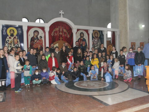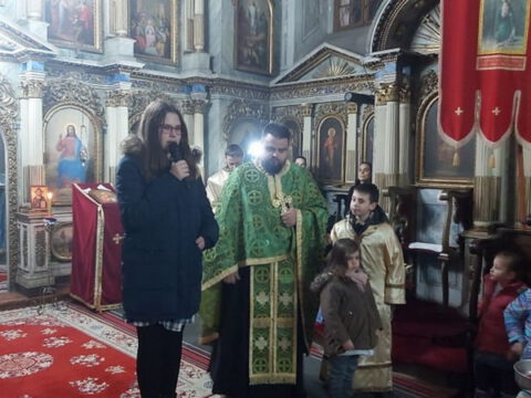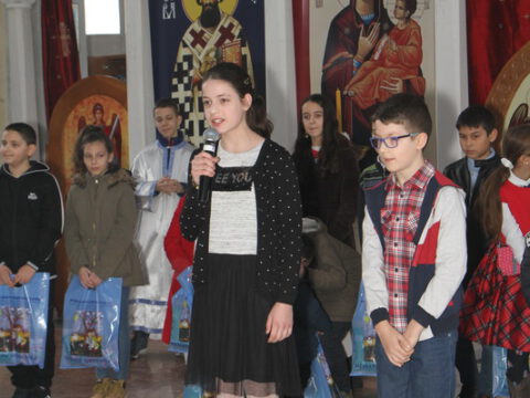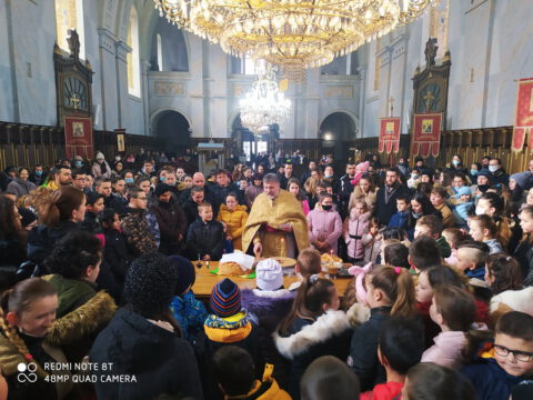 Црквена општина је обезбедила Светосавске пакетиће, који су деци, ђацима рецитаторима подељени после свете Литургије у Светосавском дому.
