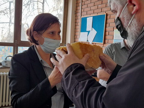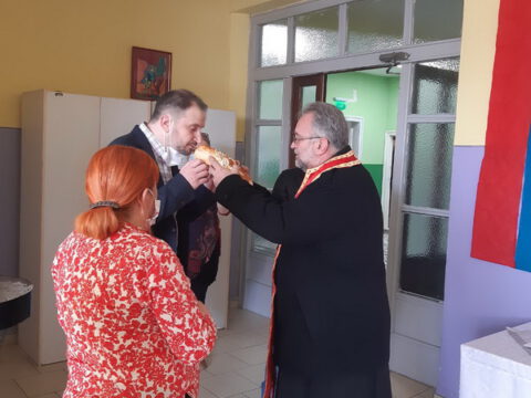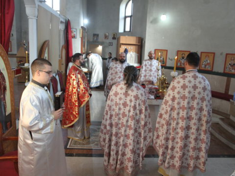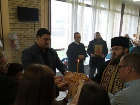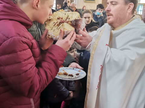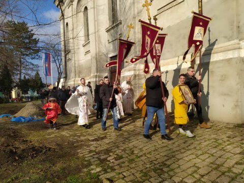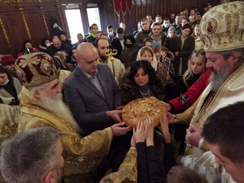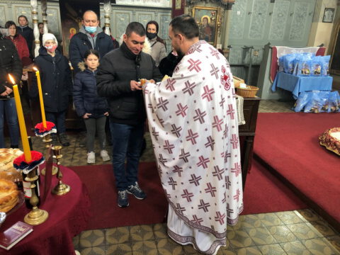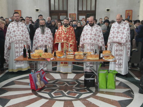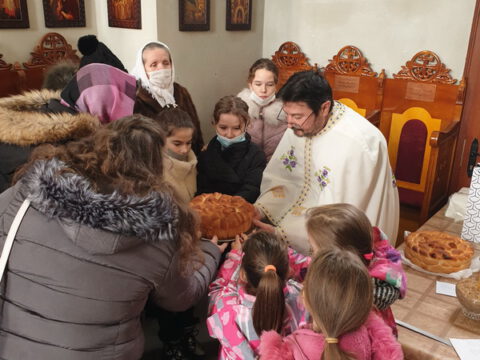 Славски колач, који су спремили кумови Ивана и Александар Лекић, пререзан је после свете Литургије, у просторијама Основне школе „Милета Протић”.