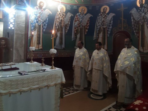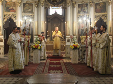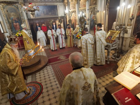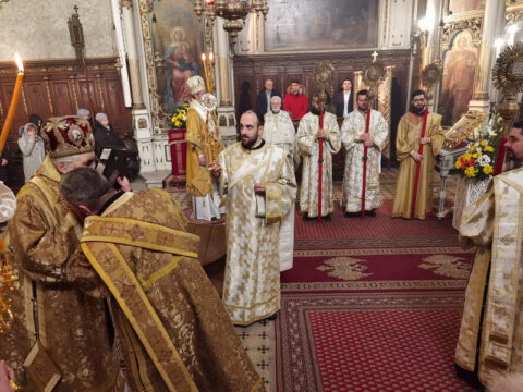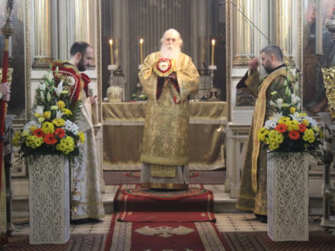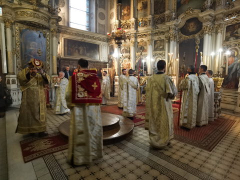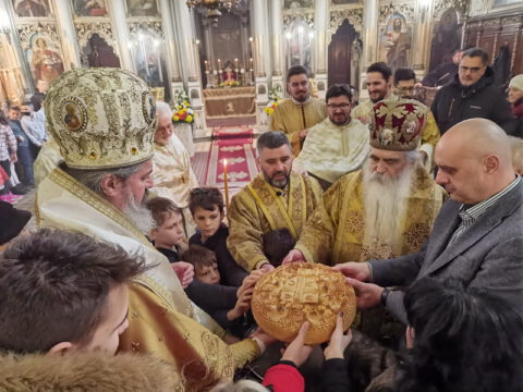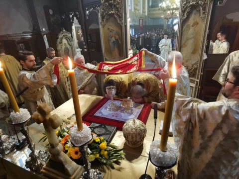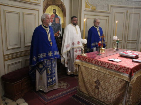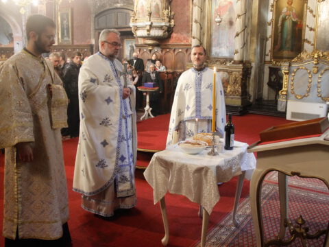 Сента – У навечерје празника Савиндана, у храму Светог архангела Михаила у Сенти служено је свечано бденије, после чега је извршено благосиљање славских дарова.