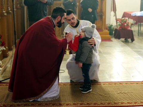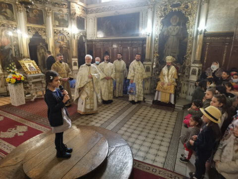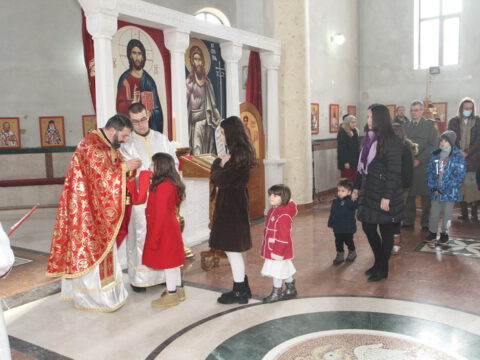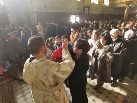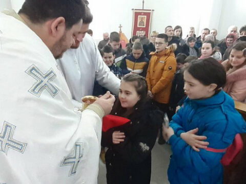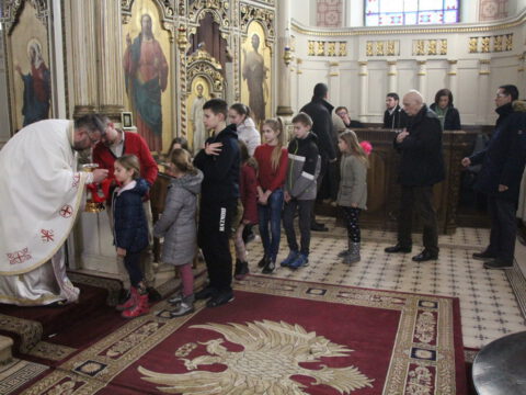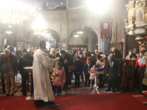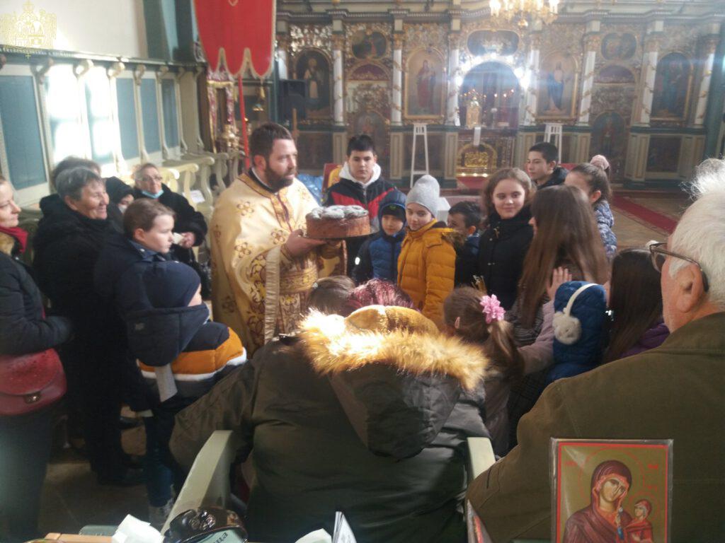 Светим Тајнама Тела и Крви Христове причестило се мноштво верника и дечице. После заамвоне молитве извршен је Чин благосиљања славских дарова – колача и кољива – а по датом отпусту Литургије уприличен је Светосавски рецитал. Сваком детету, које је било учесник рецитала, а, наравно, на крају и свој осталој присутној дечици подељени су светосавски пакетићи, а све то на свеопшту радост и задовољство свих сабраних: свештеникâ, родитељâ и дечице. Овогодишњи рецитал припремила је вероучитељица, госпођа Јелена Цанев.