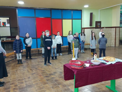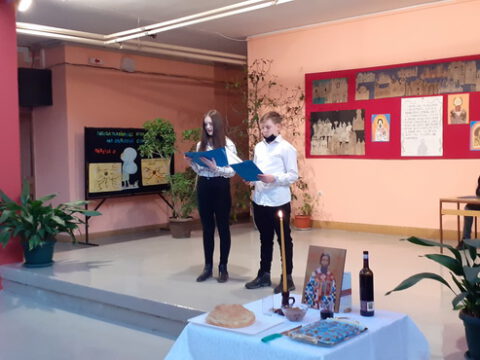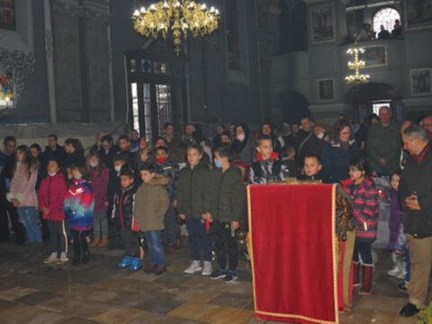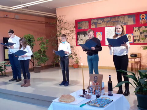 После заамвоне молитве, ученици првог разреда Основне школе ,,Алекса Шантић”, са својим вероучитељем Борисом Кузмановићем, припремили су пригодан рецитал у част и спомен првог српског Архиепископа и просветитеља Светога Саве.
