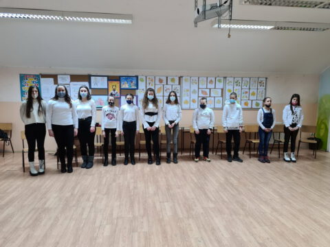 Потом је уследио програм рецитацијâ о Светоме Сави, које је започео химном у извођењу свих ученика. Програм је водио вероучитељ Жељан Субић, рецитовало је 54 деце предшколског узраста и ученика Основне школе.