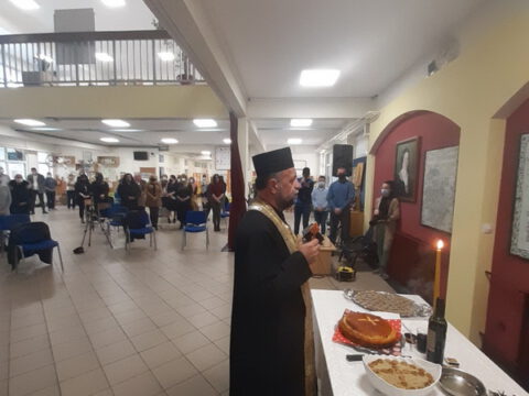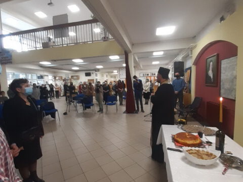 Уз присуство чланова и пријатеља Центра, архијерејски намесник суботички, протопрезвитер Душан Ђукић, уз саслужење протопрезвитера Драгана Стокина, протонамесника Гордана Увалића, пароха александровачког, и ђакона Лазара Ђачића, пререзао је славски колач и осветио славско жито, те упутио честитке и молитвене жеље да ова установа културе у Суботици настави да, својим садржајима, обогаћује и надахњује све људе добре воље и употпуни културну мапу Града, пратећи путеве нашег првог Архиепископа и Просветитеља Светога Саве.