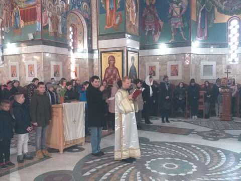 Равно Село – На дан када наша света Црква прославља првог српског Архиепископа, Светога Саву, у храму Преноса моштију Светог оца Николаја у Равном Селу, протојереј Алексеј Блануша служио је вечерње богослужење.
