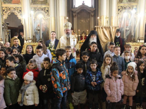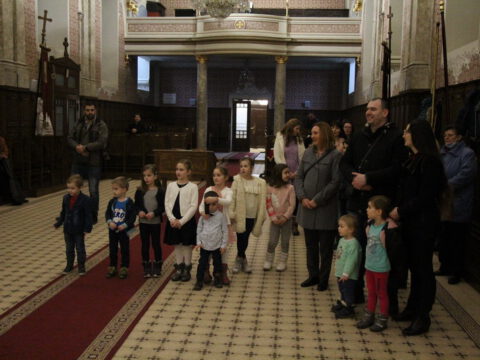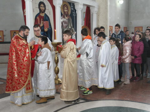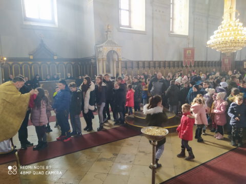 Суботица – У Световазнесенском храму у Суботици, у среду, 27. јануара 2021. године, молитвено је прослављен први Архиепископ и просветитељ српски Свети Сава, лучоноша православне вере и писмености. Свету Литургију служио је протопрезвитер Душан Ђукић, архијерејски намесник суботички, уз саслужење свештеног братства наведеног храма. Вечерње богослужење је служио презвитер Илија Анђелић. После вечерњег најмлађи светосавци су казивали своје рецитације и песмице, које су са радошћу научили о Светом Сави, чиме су увеличали празнично славље посвећено првом српском Архиепископу, а за шта су били награђени дивним пакетићима.
