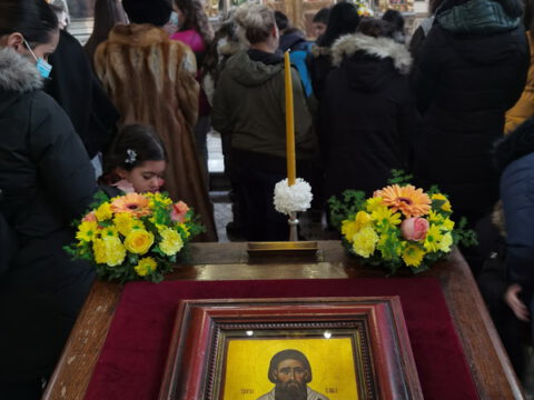 И на бденију и на светој Литургији изнесен је делић моштију Светога Саве на молитвено поклоњење верног народа и целивање, уз очигледну велику радост свих присутних што су у прилици да целивају и приме свети благослов од нашег светог Родоначелника.