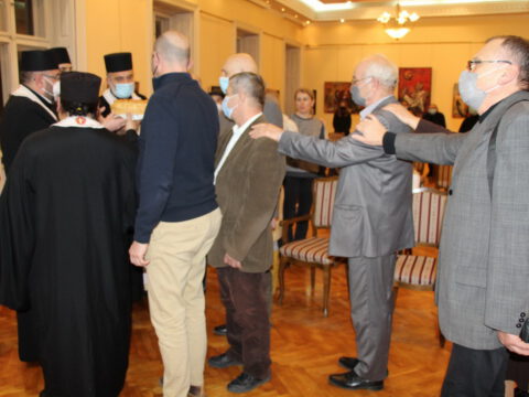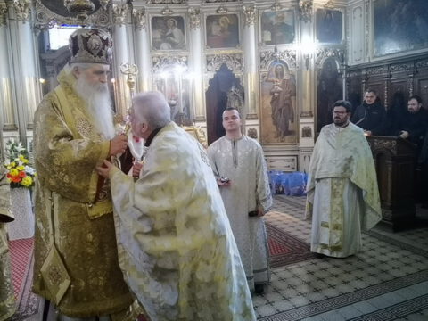 После заамвоне молитве освештани су славски дарови, а потом се Преосвећени владика Иринеј обратио присутнима поводом одласка у мировину протопрезвитера-ставрофора Миливоја Мијатова, архијерејског намесника новосадског првог. „Уверен сам да наш драги прота Миливој неће ни у пензији мировати, него ће наставити да ради, само на нешто друкчији начин, неуморно, као и до сада. Као што је у годинима своје активне парохијске службе налазио времена и није жалио труда да преводи богословске и душекорисне текстове на српски језик, тако ће, уверен сам, чинити, можда у још већој мери, и у годинама које су, ако Бог дâ, пред њим и пред нама”, навео је владика Иринеј.