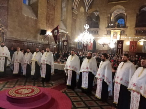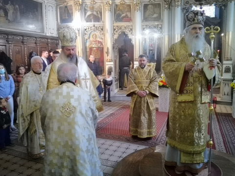 Нови Сад – Празник Светога Саве, првог Архиепископа Српске Цркве, свечано је прослављен у Саборном храму у Новом Саду, у среду, 14/27. јануара 2021. На светој архијерејској Литургији началствовао је Његово Преосвештенство Епископ бачки др Иринеј, уз саслужење Преосвећеног Епископа мохачког г. Исихија, братства Саборног храма и новосадских ђакона.