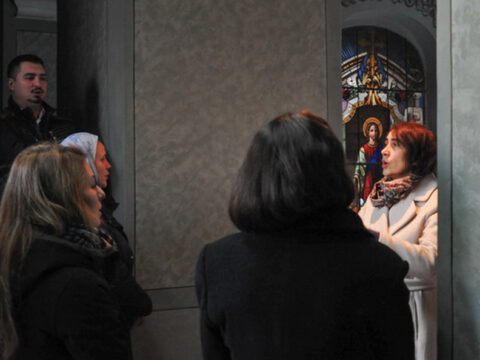 На самом почетку, речима надахнуте Светосавске беседе, обратио се катихета Бранислав Илић. У свом слову под насловом „Свети Сава – уметник хришћанског етоса“, беседник је казивао о Светом Сави као учитељу молитве. „Свети Сава је, охристовљујући свој народ, указао да је Светосавље сигурни пут који је поплочан љубављу према Богу и љубављу према ближњима. Тако данас, драги моји, прослављајући свештени спомен на Светога Саву бивамо позвани да учинимо смотру над својим животом и сагледамо очима љубави да ли испуњавамо оно што нам је даровано од Бога и стављено пред нас као свештени задатак. Сви смо на истом задатку, а наш задатак је да живимо по вечној науци Божјој. Најважнија лекција коју нам је оставио Свети Сава је живо присуство Божје кроз икону и Литургију на богослужбеном језику нашег народа, држећи опитно да је литургијски етос суштина хришћанског идентитета и предуслов сједињења са Христомˮ, истакао је катихета Бранислав.