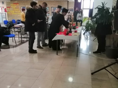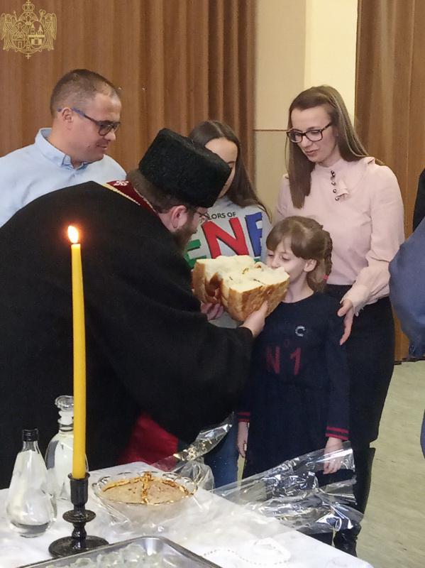 После вечерњег богослужења освећени су славски дарови, које је ове године принела светосавска кума Петра Божић, ученица трећег разреда. Ученицима, наставницима и сабраном верном народу пригодном беседом обратио се отац Алексеј, који је честитао школску славу ђацима, а затим и поучио присутне о лику и делу Светога Саве.