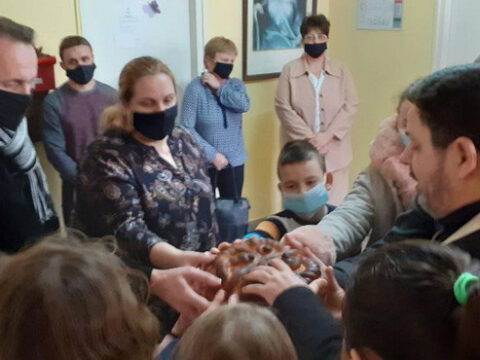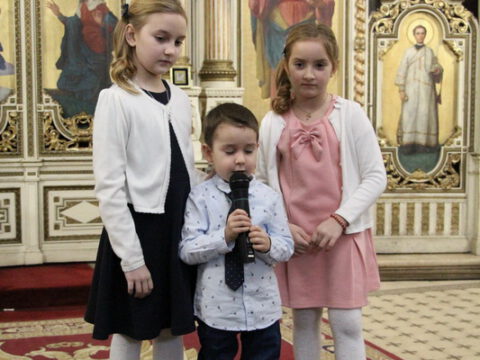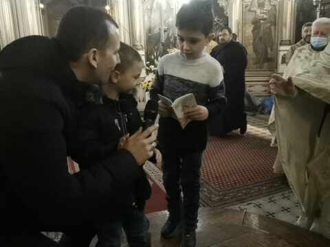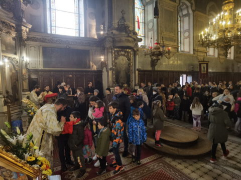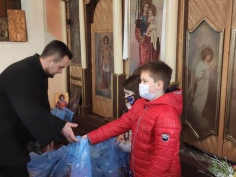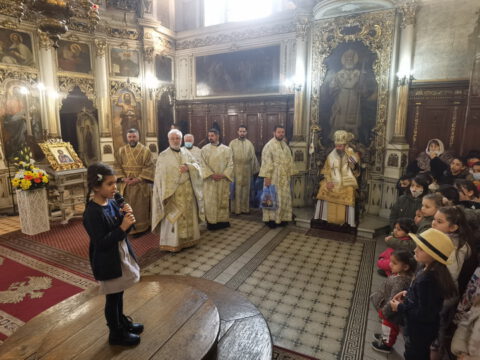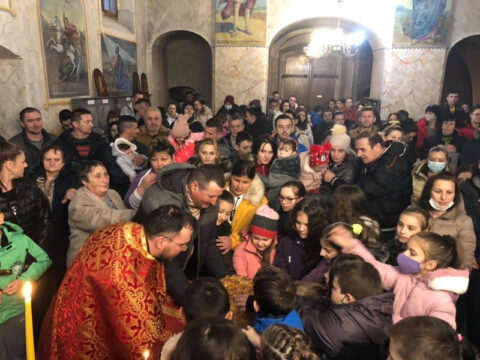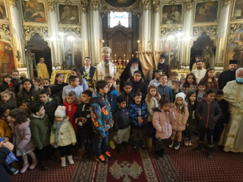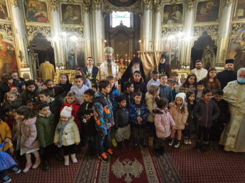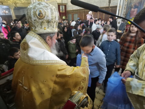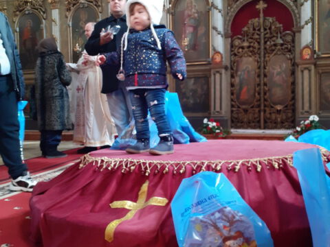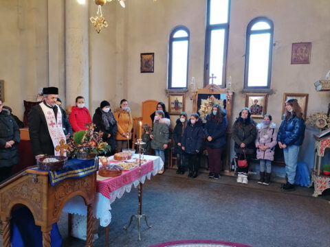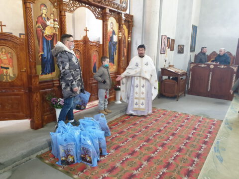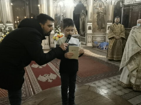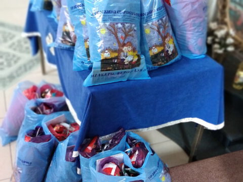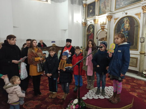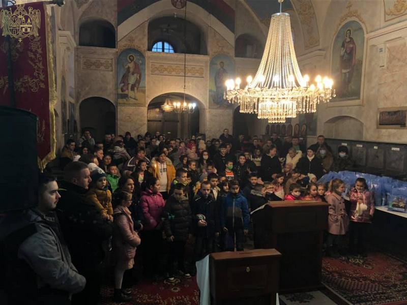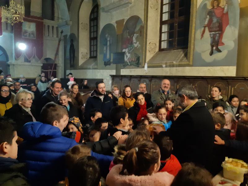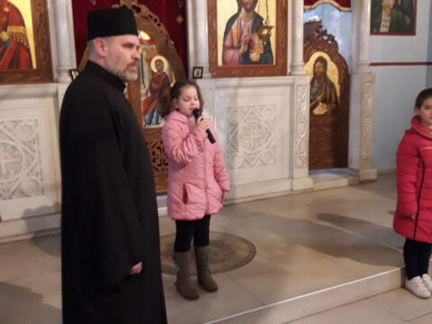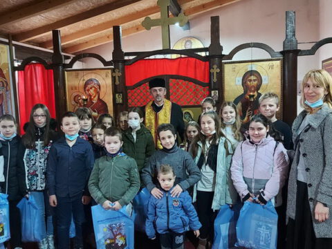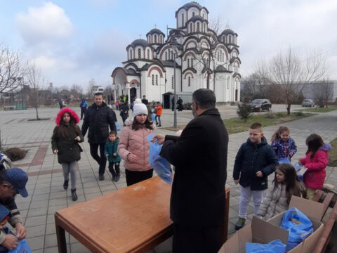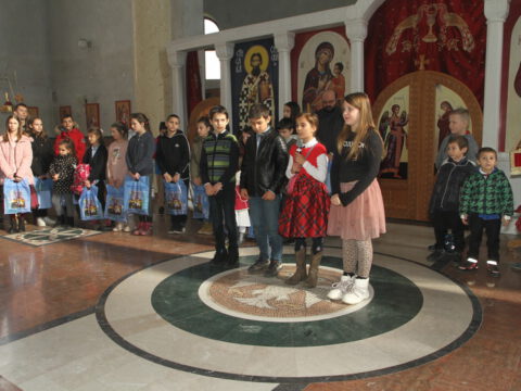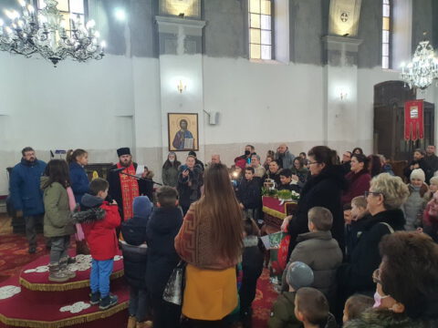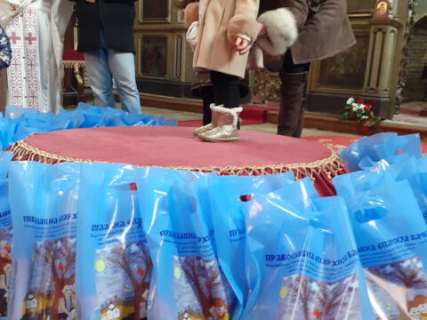 Црквена општина је обезбедила Светосавске пакетиће, који су деци, ђацима рецитаторима подељени после свете Литургије у Светосавском дому.