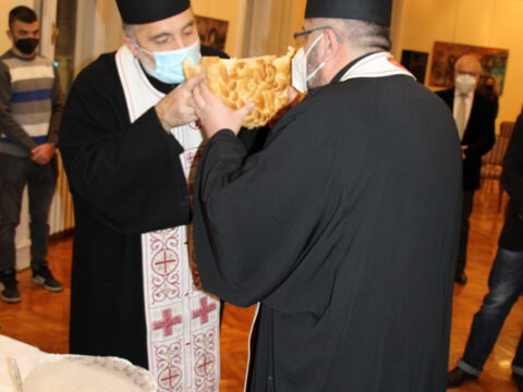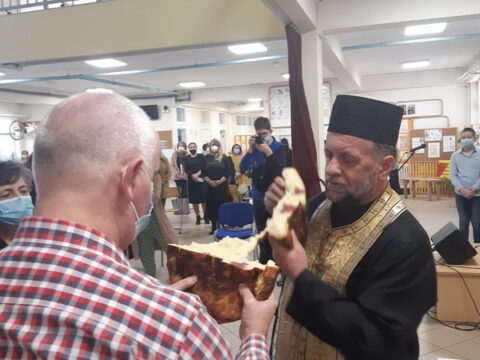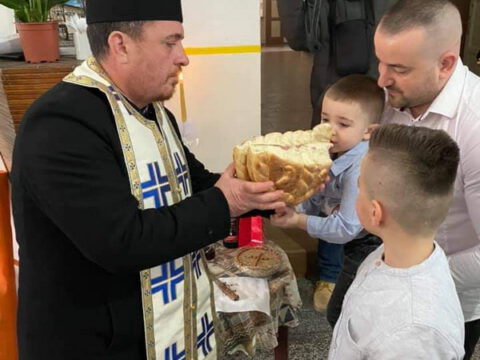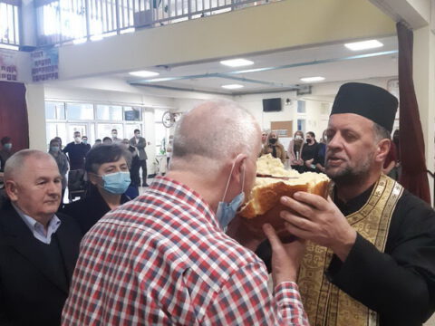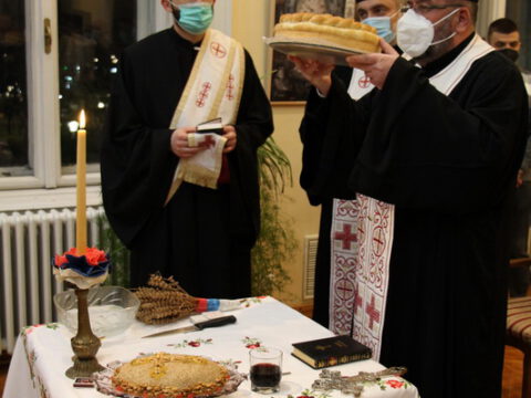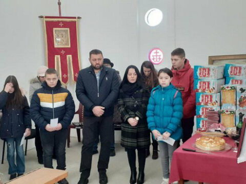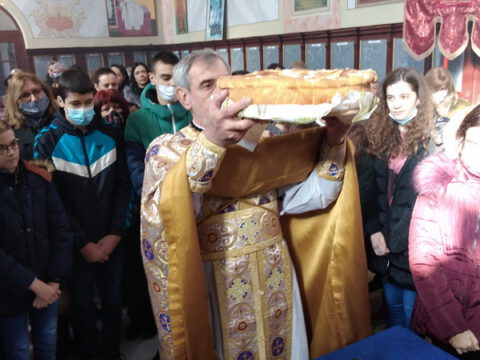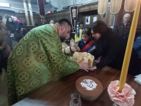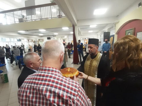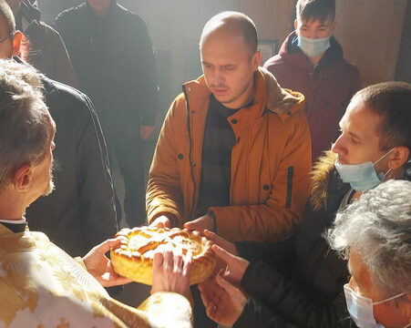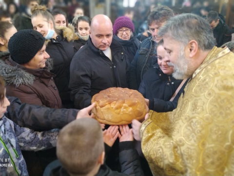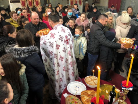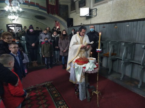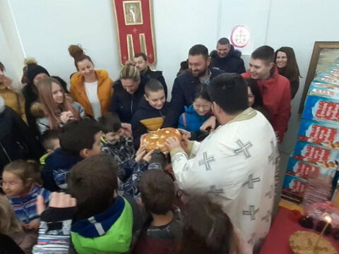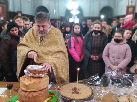 Славски колач, који су спремили кумови Ивана и Александар Лекић, пререзан је после свете Литургије, у просторијама Основне школе „Милета Протић”.