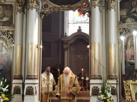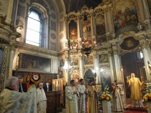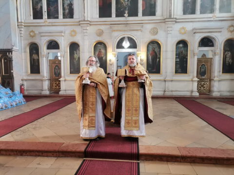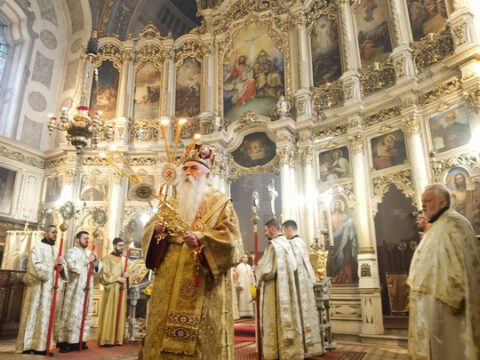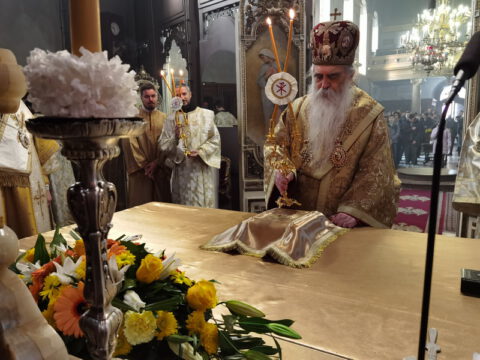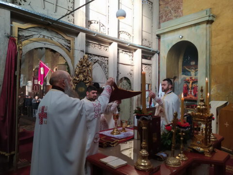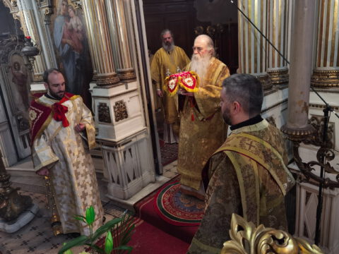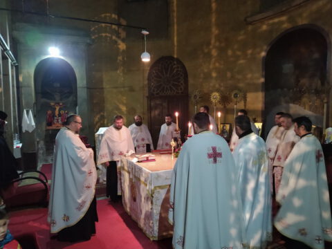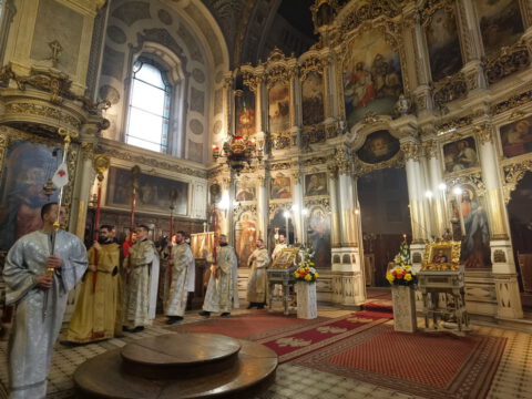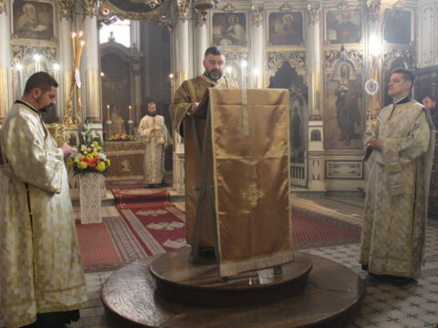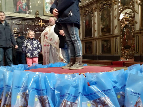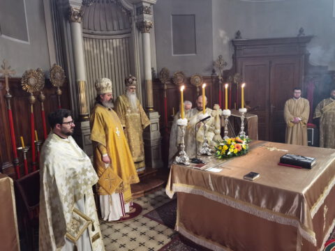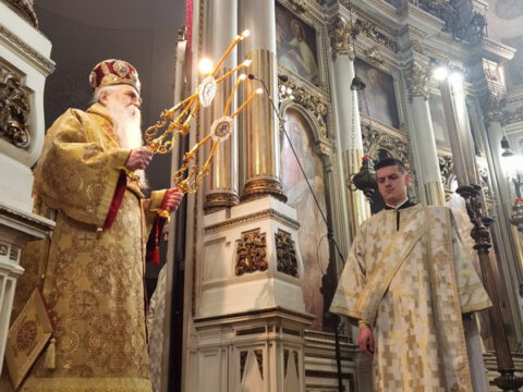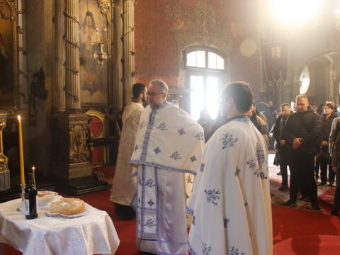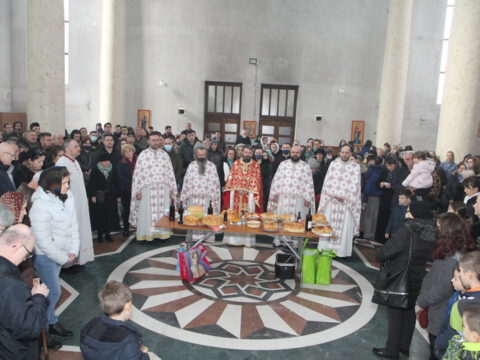 Сента – У навечерје празника Савиндана, у храму Светог архангела Михаила у Сенти служено је свечано бденије, после чега је извршено благосиљање славских дарова.