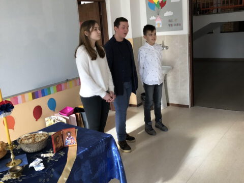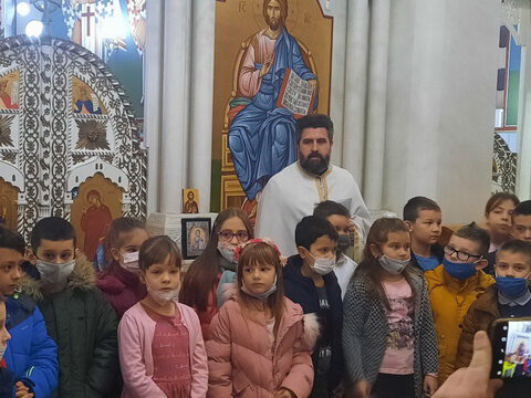 После заамвоне молитве, ученици првог разреда Основне школе ,,Алекса Шантић”, са својим вероучитељем Борисом Кузмановићем, припремили су пригодан рецитал у част и спомен првог српског Архиепископа и просветитеља Светога Саве.