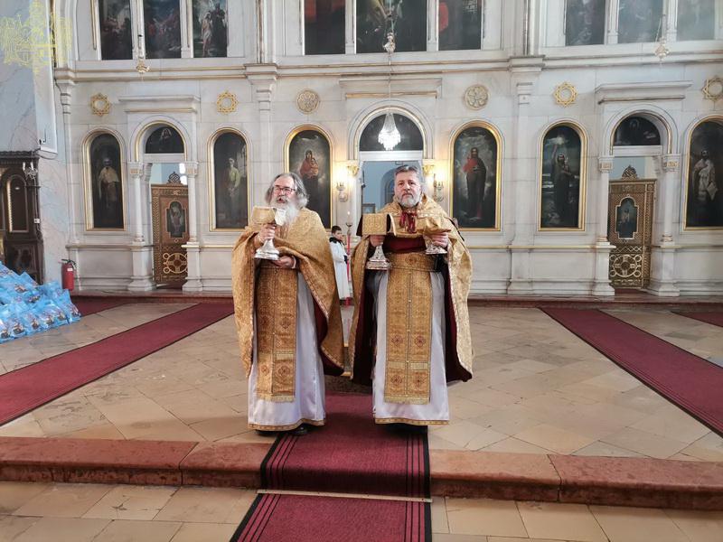 Светом Литургијом у Светојовановском храму је началствовао протопрезвитер Предраг Милутин, уз саслужење ђакона Николе Дувњака, а у храму Покрова Пресвете Богородице началствовао је презвитер Радован Маљковић, уз саслужење протонамесника Новице Ракића.