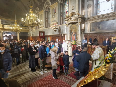 И на бденију и на светој Литургији изнесен је делић моштију Светога Саве на молитвено поклоњење верног народа и целивање, уз очигледну велику радост свих присутних што су у прилици да целивају и приме свети благослов од нашег светог Родоначелника.