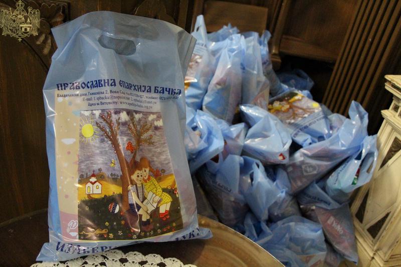 Сомбор – У среду, 27. јануара, када наша света Црква прославља Светога Саву, у свим храмовима архијерејског намесништва сомборског је литургијски прослављен Савиндан. После Литургије, одржан је Светосавски рецитал деце, а у архијерејском намесништву сомборском је подељемо 805 светосавских пакетића. У поподневним часовима, у свим школама је пререзан славски колач и освештано славско кољиво.
