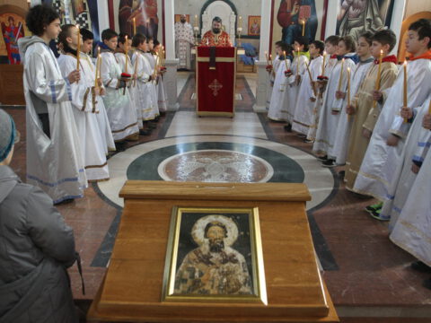 Равно Село – На дан када наша света Црква прославља првог српског Архиепископа, Светога Саву, у храму Преноса моштију Светог оца Николаја у Равном Селу, протојереј Алексеј Блануша служио је вечерње богослужење.