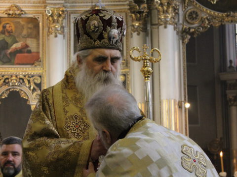 Нови Сад – Празник Светога Саве, првог Архиепископа Српске Цркве, свечано је прослављен у Саборном храму у Новом Саду, у среду, 14/27. јануара 2021. На светој архијерејској Литургији началствовао је Његово Преосвештенство Епископ бачки др Иринеј, уз саслужење Преосвећеног Епископа мохачког г. Исихија, братства Саборног храма и новосадских ђакона.