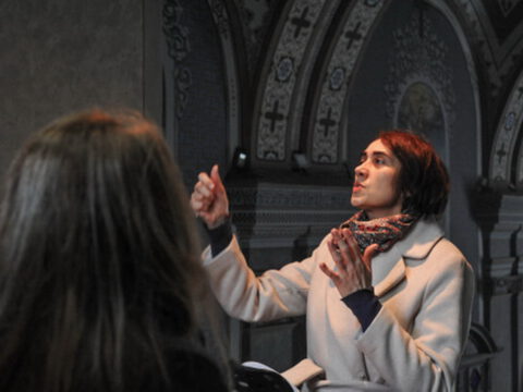 На самом почетку, речима надахнуте Светосавске беседе, обратио се катихета Бранислав Илић. У свом слову под насловом „Свети Сава – уметник хришћанског етоса“, беседник је казивао о Светом Сави као учитељу молитве. „Свети Сава је, охристовљујући свој народ, указао да је Светосавље сигурни пут који је поплочан љубављу према Богу и љубављу према ближњима. Тако данас, драги моји, прослављајући свештени спомен на Светога Саву бивамо позвани да учинимо смотру над својим животом и сагледамо очима љубави да ли испуњавамо оно што нам је даровано од Бога и стављено пред нас као свештени задатак. Сви смо на истом задатку, а наш задатак је да живимо по вечној науци Божјој. Најважнија лекција коју нам је оставио Свети Сава је живо присуство Божје кроз икону и Литургију на богослужбеном језику нашег народа, држећи опитно да је литургијски етос суштина хришћанског идентитета и предуслов сједињења са Христомˮ, истакао је катихета Бранислав.