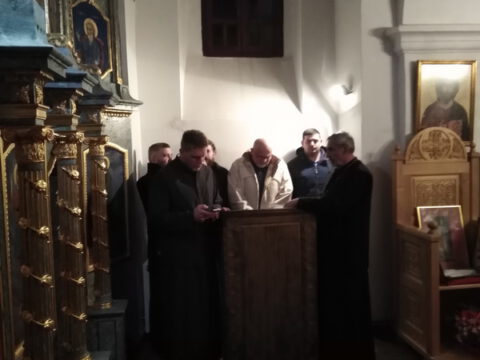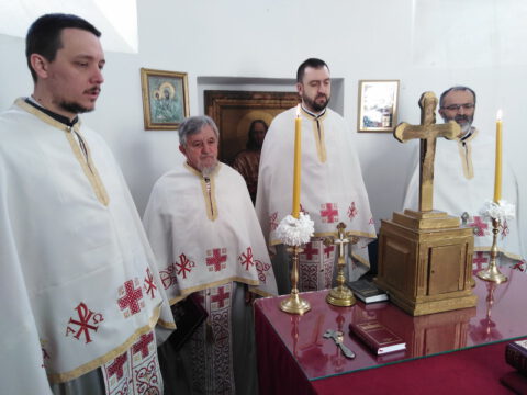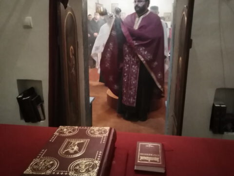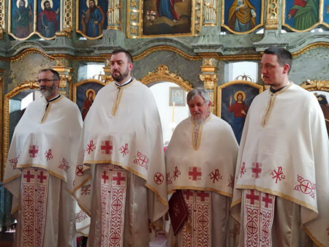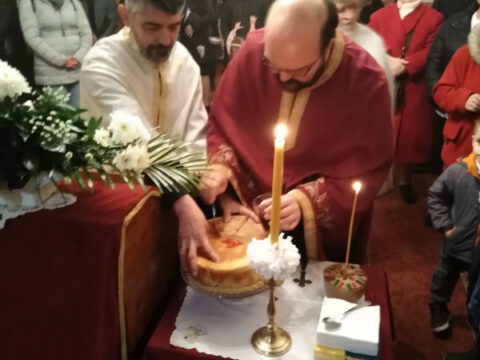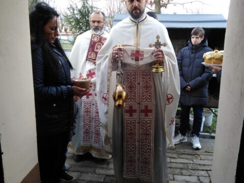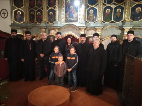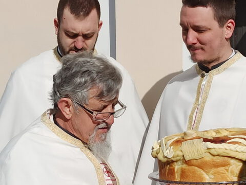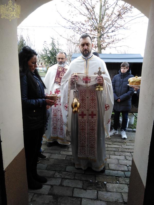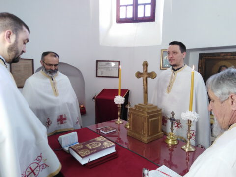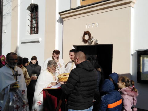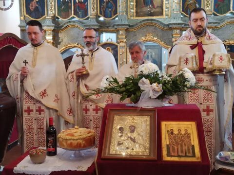 На вечерњој служби је началствовао архијерејски намесник новосадски други, протојереј Бранислав Мркић, а саслуживали су: протонамесник Горан Артуков, парох ченејски, и протојереј Винко Стојаковић, парох у пензији. На крају службе је освећено кољиво и пререзан славски колач. Отац Бранислав је, у беседи, истакао значај свете тројице Јерараха, подсећајући да су они писци свете Литургије. У име парохијана и кума славе, г. Уроша Ђорђевића и његове породице, отац Огњен је захвалио свима који су дошли да увеличају празнично славље.