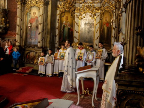 У Недељу Православља, 8/21. марта 2021. године, у храму Светог великомученика Георгија у Сомбору, светом Литургијом је началствовао протојереј-ставрофор Миливој Мијатов уз саслужење свештеникâ Светођурђевског храма. После заамвоне молитве, по устаљеној пракси, служен је чин литије са светим иконама.