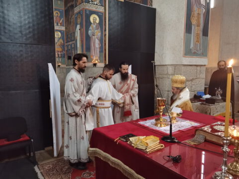 У току свете Литургије, владика Исихије је рукоположио ипођакона Ђорђа Цвијановића у чин ђакона. По завршетку Литургије служен је мали помен.