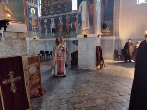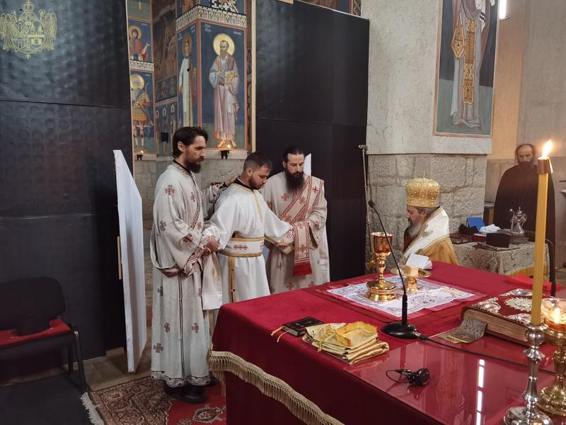 У току свете Литургије, владика Исихије је рукоположио ипођакона Ђорђа Цвијановића у чин ђакона. По завршетку Литургије служен је мали помен.