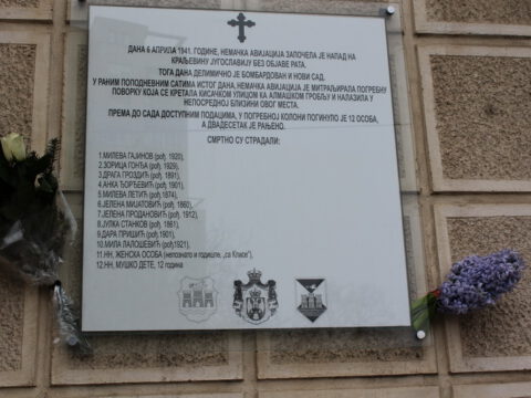 У уторак, 6. априла 2021. године, протопрезвитер Жељко Латиновић, настојатељ Светоуспенског храма у Новом Саду, освештао је спомен-плочу и служио помен страдалима у бомбардовању Новог Сада, које се догодило пре осамдесет година – 6. априла 1941. године. Оцу Жељку је саслуживао ђакон Мирослав Николић, управник Ризнице Епархије бачке и епархијске архиве. Спомен-плоча, која сведочи о страдању Новосађана током напада на Краљевину Југославију 6. априла 1941. године, постављена је у Кисачкој улици број 62.