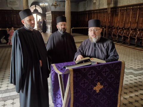 У понедељак, пете седмице Часног поста, 12. априла 2021. године, после јутарњег богослужења у Саборном храму Светог великомученика Георгија у Новом Саду, свештеници и ђакони архијерејског намесништва новосадског првог, предвођени Његовим Преосвештенством Епископом новосадским и бачким господином Иринејем, приступили су светој Тајни исповести.