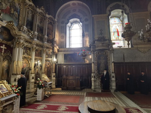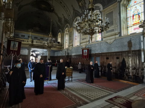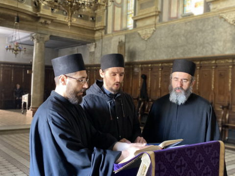 У понедељак, пете седмице Часног поста, 12. априла 2021. године, после јутарњег богослужења у Саборном храму Светог великомученика Георгија у Новом Саду, свештеници и ђакони архијерејског намесништва новосадског првог, предвођени Његовим Преосвештенством Епископом новосадским и бачким господином Иринејем, приступили су светој Тајни исповести.