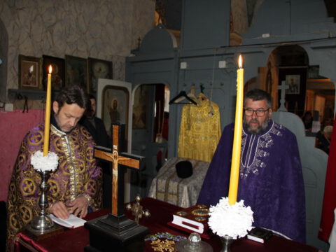 У среду, пете седмице Часног поста, 14. априла 2021. године, у храму Преображења Господњег у Хоргошу Литургију пређеосвећених Дарова служио је протопрезвитер Душан Ђукић, архијерејски намесник суботички, уз саслужење протонамесника Бошка Симића.