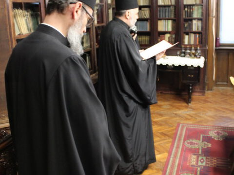 Васкршњој честитки Епископу бачком у Владичанском двору присуствовали су протопрезвитер Миодраг Шипка, архијерејски намесник новосадски први, и новосадски ђакони.