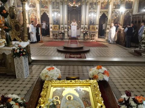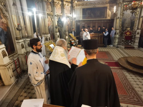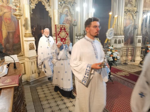 Током празничног вечерњег богослужења, по устаљеном типику Саборног храма у Новом Саду, прочитан је одељак из светог Јеванђеља по Јовану на седам језика.