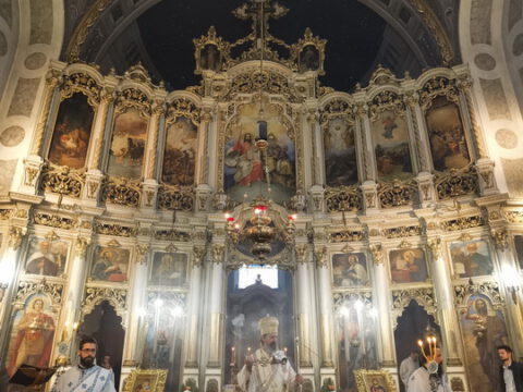 На празник Васкрсења Господа нашег Исуса Христа, 19. aприла/2. маја 2021. године, са почетком у 18 часова, Његово Преосвештенство Епископ мохачки господин Исихије служио је свечано Пасхално вечерње у Саборном храму Светог великомученика Георгија у Новом Саду, у присуству Његовог Преосвештенства Епископа новосадског и бачког господина Иринеја, уз саслужење протопрезвитера-ставрофора Ђорђа Ђурђева, настојатеља Светогеоргијевског храма, јерођакона Јустина (Живанића) и ђакона Милована Крстића.