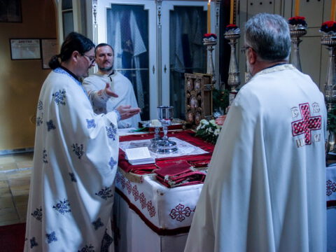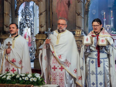 Свету Литургију служио је протојереј-ставрофор Радивој Панић, уз саслужење јереја Владимира Маркова, пароха у Каћу, јереја Даниела Кобиљског, надлежног пароха, и ђакона Јована Вачика.