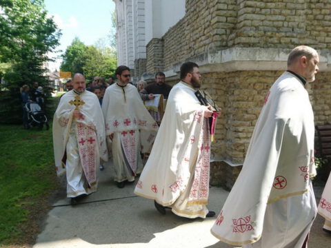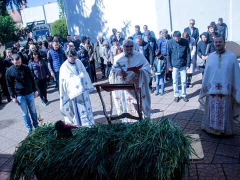 Светом Литургијом началствовао је надлежни парох, протопрезвитер Горан Артуков, који се сабраном народу обратио пригодном беседом. Овогодишњи кум био је г. Марко Мургашки са Ченеја. У продужетку Литургије учињен је трократни опход око Светотројичног храма, уз читање литијских молитава и благослов жита.